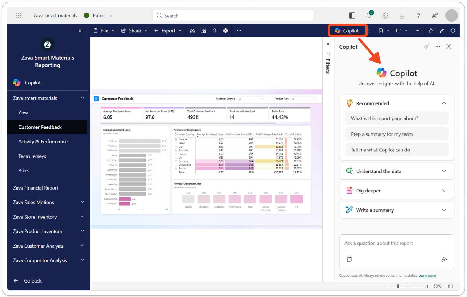 図3. レポート上でCopilot を開く