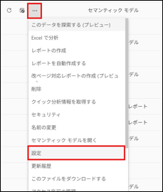 クラウドのデータソース (例えば SharePoint) へ接続しているセマンティックモデルの […] > [設定] ページを開きます。